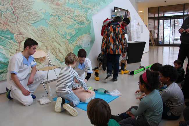 Delavnica: demonstracija in praktični preizkus osnov prve pomoči (položaj nezavestnega, defibrilator, zaščita pred vročino, kako ugotovimo, ali ponesrečenec diha,…)